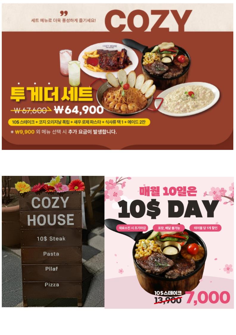 - 투게더세트1: (세트 구성은 코지하우스 메뉴판에서 확인하여 구체적으로 작성)