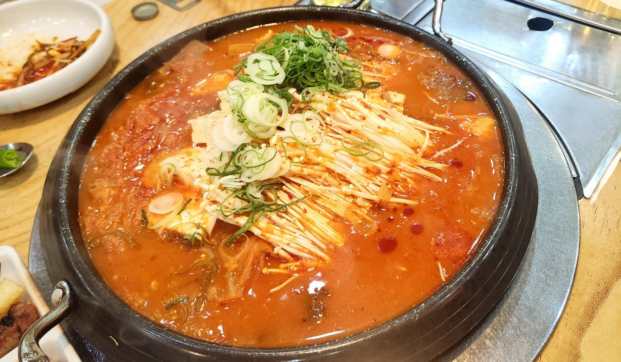 그냥 나오는 전골이 아니라, 진한 국물에 두부, 버섯, 야채, 깊은 풍미가 느껴지는