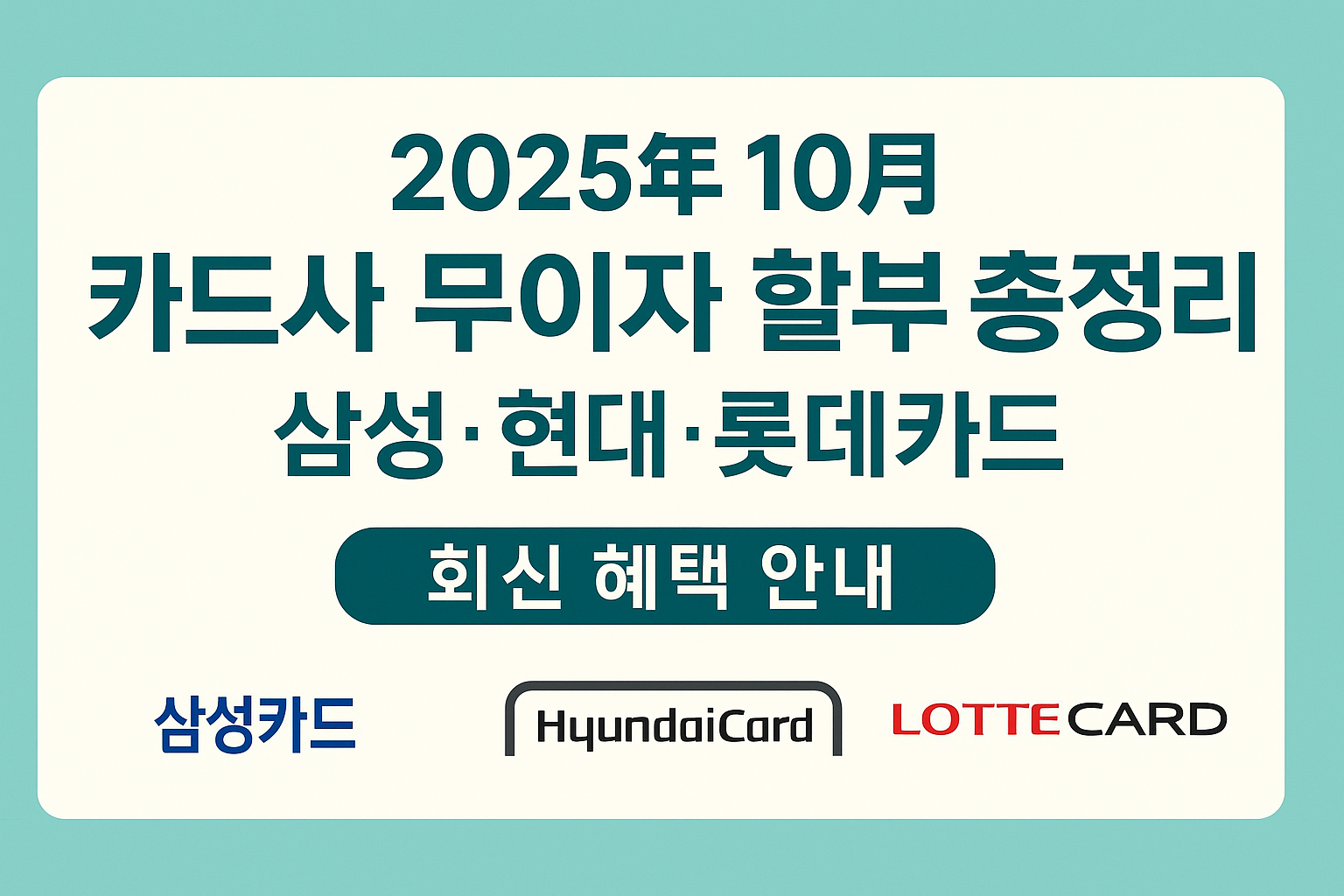 2025년 10월 카드사 무이자 할부 총정리|삼성·현대·롯데카드 최신 혜택 안내 본문