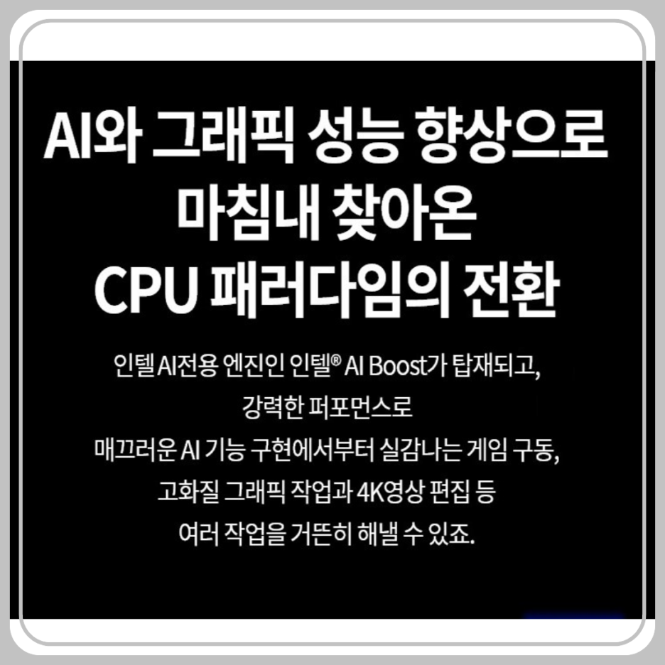 코어 Ultra5 탑재로 문서작업부터 영상편집, 프레젠테이션 준비 등 다양한 작업에서