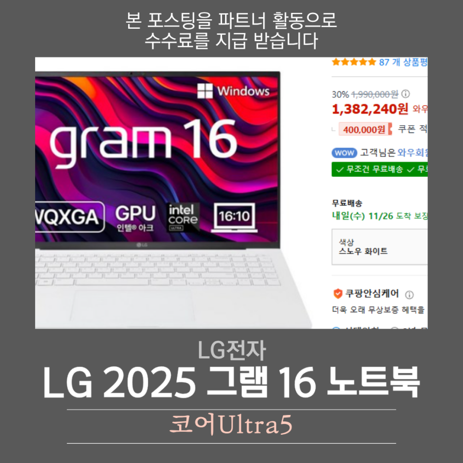 LG전자 2025 그램 16 코어Ultra5 - 노트북 | 쿠팡