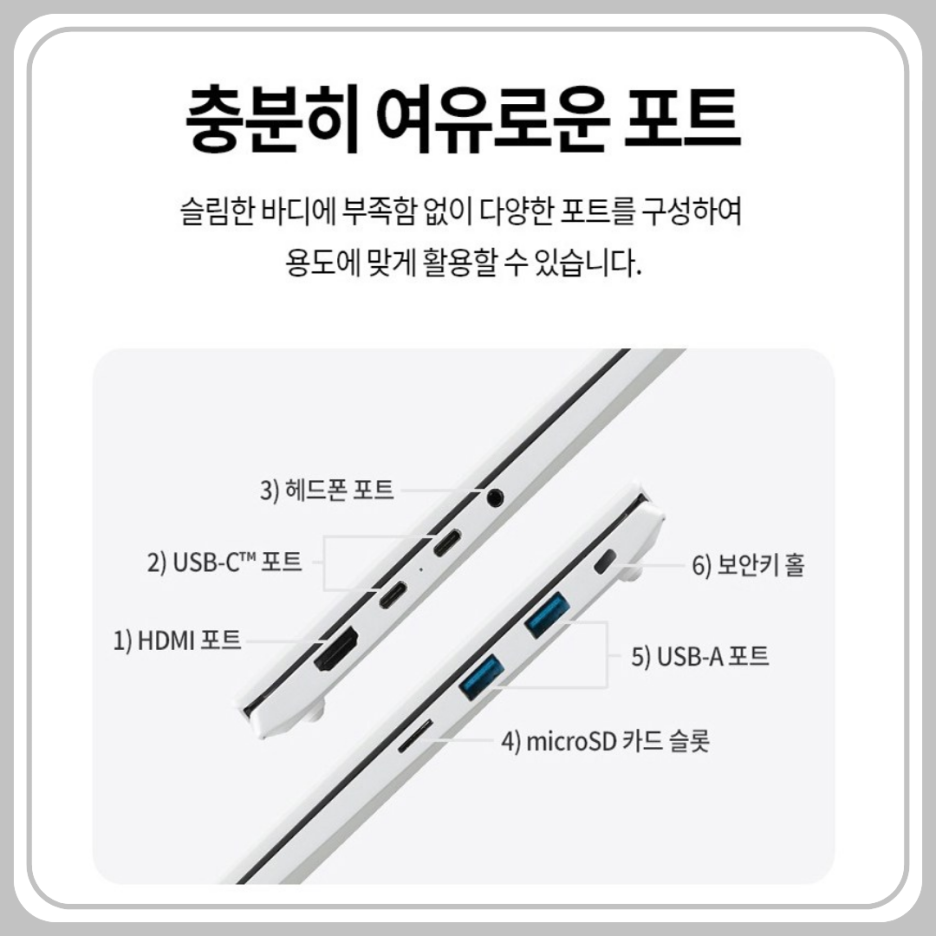 이 모델은 ‘휴대성과 작업 위주’에 초점이 맞춰져 있어, 고사양 게이밍이나